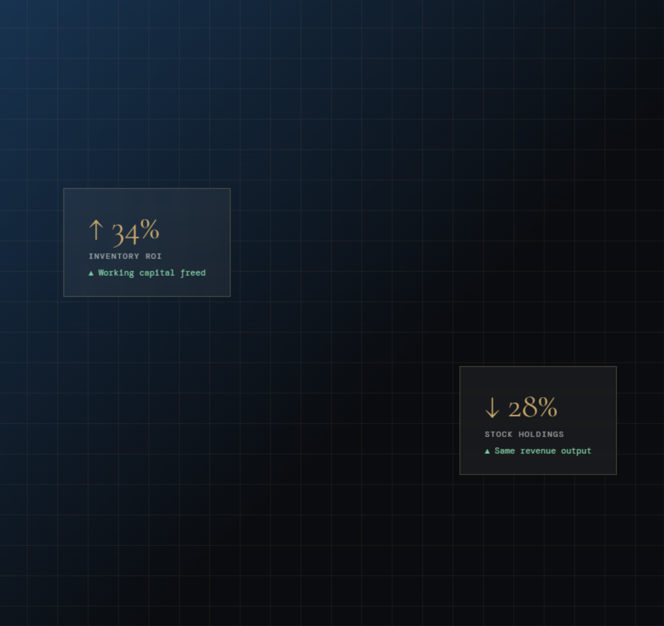 Beyond inventory, we implement the financial systems, dashboards and OKRs that give management teams real-time visibility. We advise on customer segmentation, pricing strategy and process automation — as operators and founders, not just advisors.
